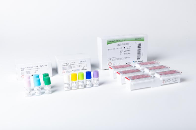 Immunoreaction cartridges and calibrators to be used with the automated LUMIPULSE G1200 for the quantitative measurement of Tau phosphorylated at threonine 217 (pTau 217) in cerebrospinal fluid (CSF).